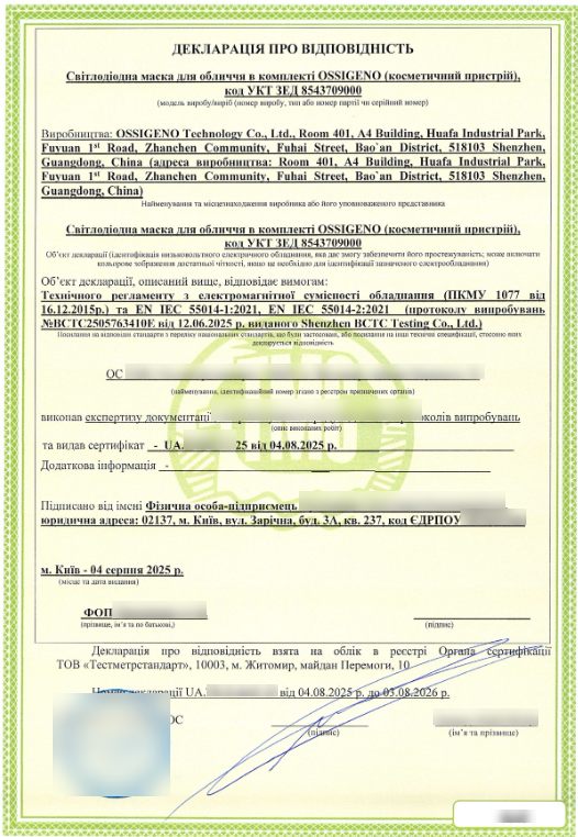 Декларація, видана на основі випробувань та аналізу документації, є прямим доказом виконання цих обов’язкових вимог.